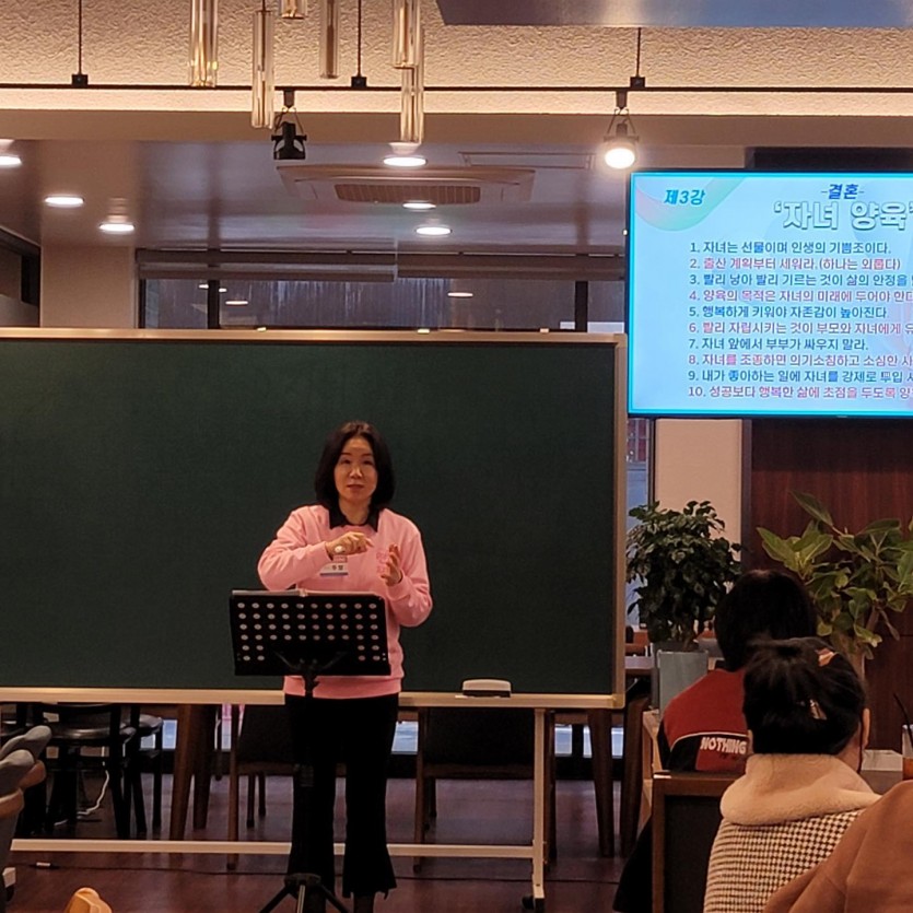 연결프로젝트 7주차 작성자 정보 관리자 작성 작성일 2023.02.16 22:02 컨텐츠 정보 341 조회 목록 답글 본문 강의: 제7강 자녀양육자녀는 선물이며 인생의 기쁨조이다.빨리 낳아 빨리 기르는 것이 삶의 안정을 빨리 가져온다.양육의 목적은 자녀의 미래에 두어야 하며 행복하게 키워야 자존감이높아진다. 어떻게 해야 올바르게 자녀를 키울 수 있을까?프로그램: 자녀를 어떻게 키울 것인지 계획을 세워보자! 2022.11.12 관련자료 댓글 0 등록된 댓글이 없습니다. Select File Upload File 목록 답글